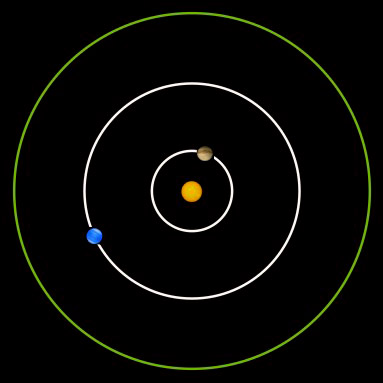 TOI-2093 b TOI-2093 c Радиус эффективной земной орбиты (показана зеленым цветом) - 0.43 а.е. Орбиты обеих планет отрисованы в предположении нулевого эксцентриситета.